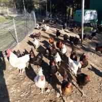Nous sommes au calme au milieu de la nature, avec une vue panoramique sur le village et la vallée, entourés de nos animaux :
